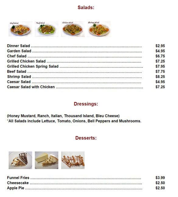 Olive Garden Menu Prices. Online menus items descriptions and prices for Olive Garden Italian Restaurant - Restaurant - Irving TX 75062. Stop by today and enjoy family style dining and fresh Italian food at our local restaurants.